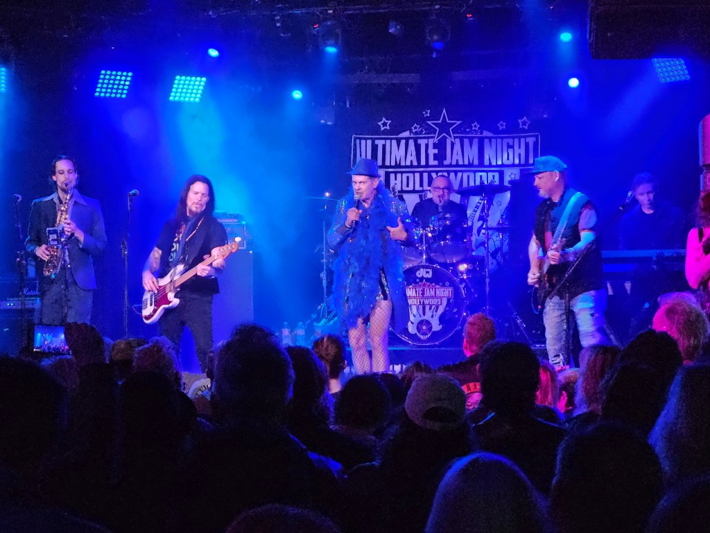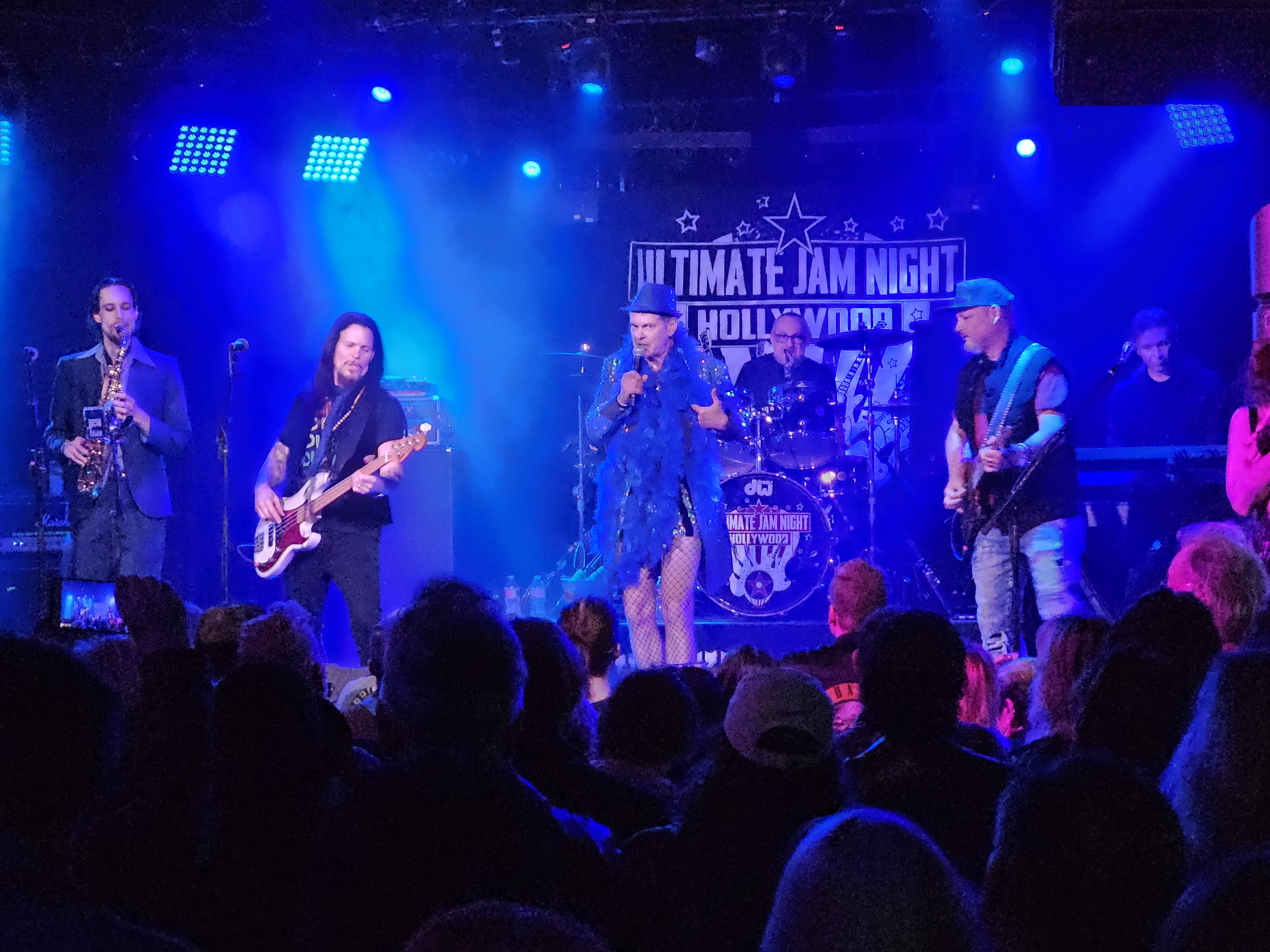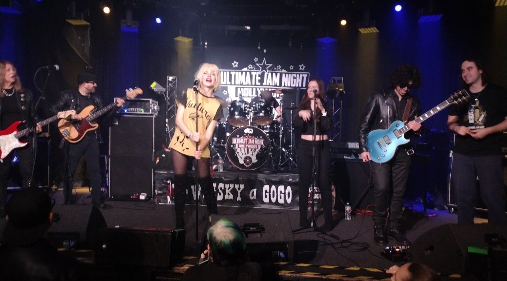 About two dozen music devotees braved the torrential downpour of L.A. rain on Tuesday night to hear some cool cover tunes by the Ultimate Jam Night Hollywood band of revolving musicians. The rockin’ two-hour show at the Whisky A Go-Go featured timeless hits from every iconic band from The Beatles to Blondie.