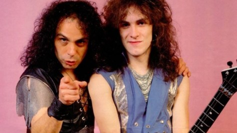 As far as authenticity goes, this Dio tribute band launched by guitar legend Vivian Campbell (pictured with Dio, right) carries a bit more cache and is comprised of members of RJD’s career-making early band, which also helped co-write tracks on the first three hits-packed Dio albums: 1983’s Holy Diver, 1984’s Last in Line, and 1985’s Sacred Heart.