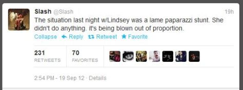SLASH TAKES TO TWITTER TO BLAST LINDSAY LOHAN ARREST REPORT