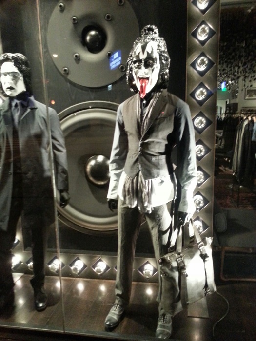 Detroit (Rock City)-born designer John Varvatos is giving KISS Army members a good reason to trade in their uniforms and step-up their style by using KISS to showcase his latest menswear collection. The front windows of Varvatos’ West Hollywood store at 8800 Melrose Ave at Robertson feature likenesses of the iconic band members donning the designer’s Spring 2014 fashions.