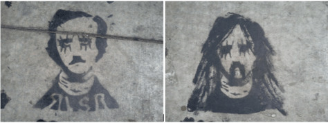 A slick street artist — and apparent fan of Poe, A Clockwork Orange, Rob Zombie (maybe) and everything Goth — has added some cool pavement art to the Sunset Strip in front of the Viper Room in West Hollywood.