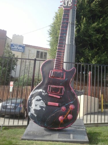 Late music legend James Brown is the newest icon to receive a rockin’ tribute via Sunset Boulevard’s Gibson Guitar Town outdoor art installation of towering hand-painted guitar sculptures that are ubiquitous throughout the famous Strip, from Doheny to Crescent Heights.